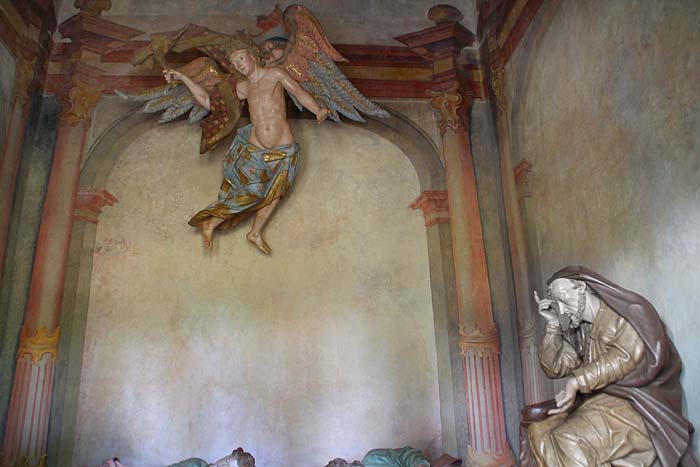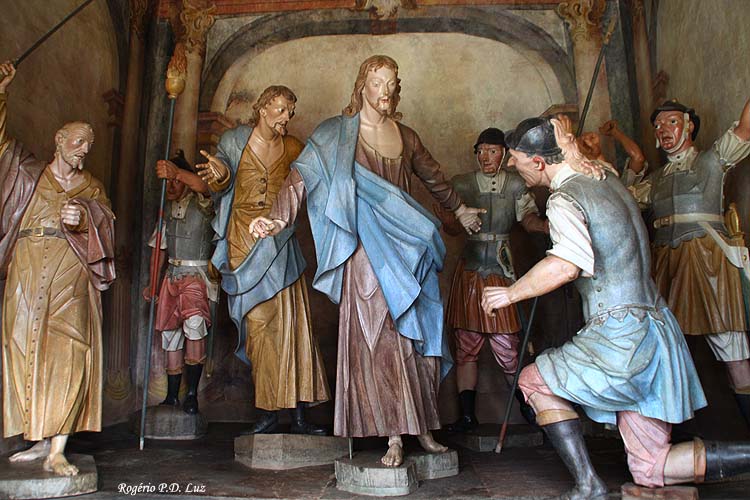 A capela da esquerda é a mais antiga e bem acabada, e abriga a cena da Última Ceia. Na capela da direita, está a cena do Passo do Horto.