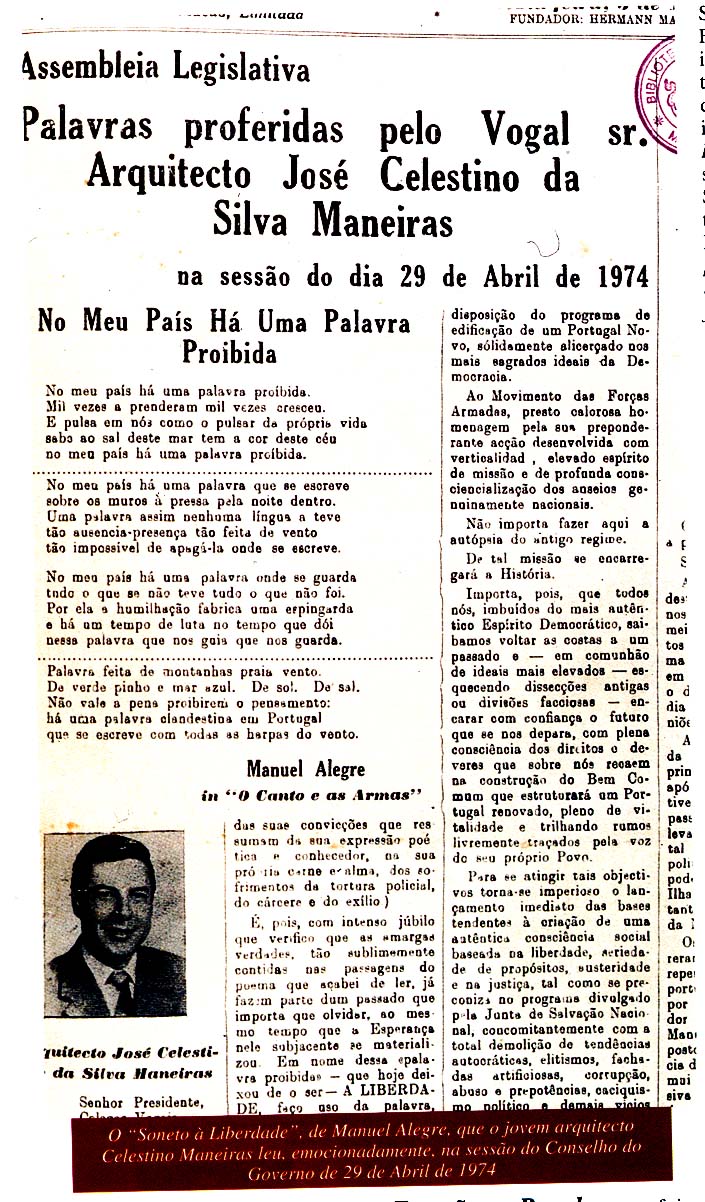nador, peço licença para explicara minha atitude. Eu não tenho nada contra a Junta de Salvação Nacional, mas termos mandado há cinco dias um telegrama a apoiar a política do Primeiro Ministro Marcelo Caetano e mandarmos hoje outro, apoiando uma política completamente