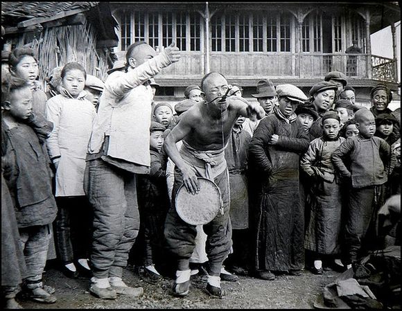 (25) Por volta de 1910, os artistas de rua, engolidores de espada