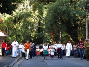 A procissão teve início às 14 horas e percorreu pelas ruas do entorno da igreja. Teve que enfrentar o trânsito que era interrompido por dois policiais de motocicleta, para sua passagem por um trecho da Av. Dr. Arnaldo. Saindo da avenida, seguiu por ruas tranquilas e residenciais, bem arborizadas, praticamente sem trânsito. Fez uma parada diante da Creche de Nossa Senhora de Fátima onde crianças recepcionaram a imagem da Santa, para depois acompanharem a procissão até o seu retorno à igreja.