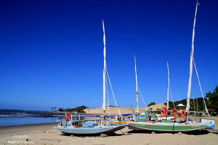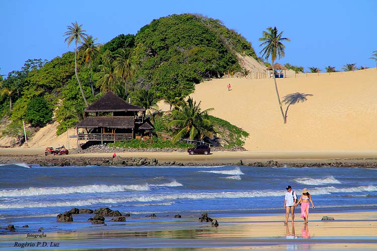 Genipabu ou Jenipabu parecendo um paraíso com suas dunas e praia, fica no litoral norte a cerca de 20 km de Natal, capital do Estado do Rio Grande de Norte, nordeste do Brasil.