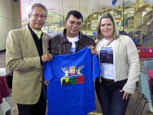 O Prefeito da Macau brasileira que foi participar num congresso no Sul do Brasil na companhia da esposa Aline Galdino, fez questão de, na viagem de volta, fazer uma paragem em São Paulo para conviver com a comunidade macaense e participar na festa de aniversário da Casa de Macau no domingo de 23 de Junho. Atendeu ao convite que fiz na visita a esta terra do sal, conforme noticiado no JTM na edição de 21 de Junho.