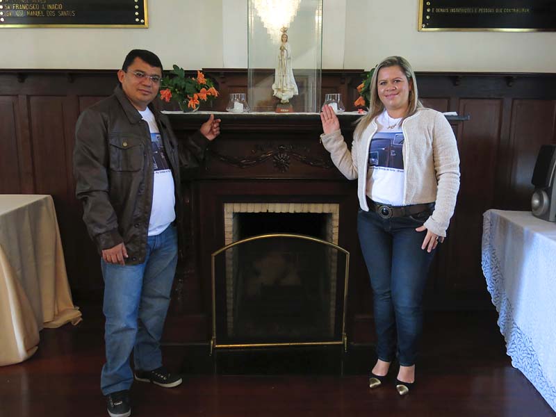 Religiosos, o casal ficou encantado com a imagem de Nossa Senhora de Fátima no salão nobre