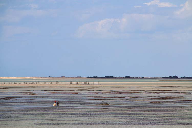 Uma praia rasa com areia fina e dura. Em maré baixa, com cuidado, dá para andar longe nas águas com alto teor de salinidade.