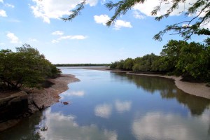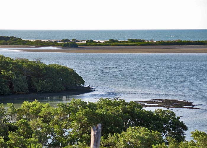 Manguezais que separam a costa do mar aberto só podem ser alcançadas por barco possuindo praias pouco frequentadas