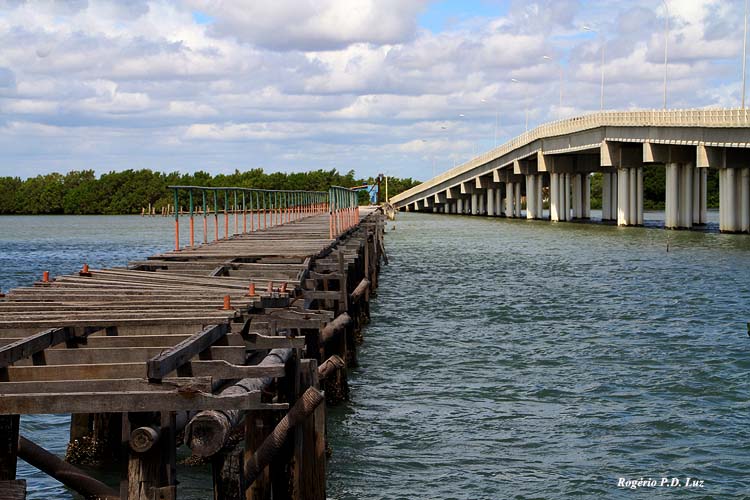 Passa pela nova ponte que liga a Ilha de Santana e antiga de madeira toda desmoronada.