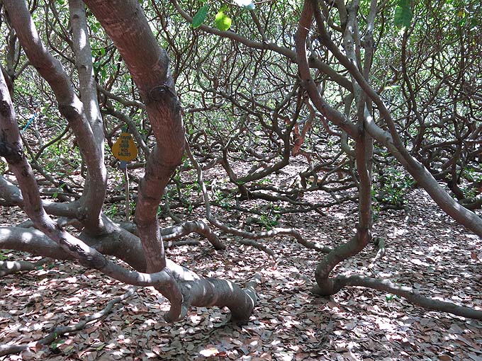 ao tocar o solo, os galhos começam a criar raízes, e daí passam a crescer novamente, como se fossem troncos de uma outra árvore