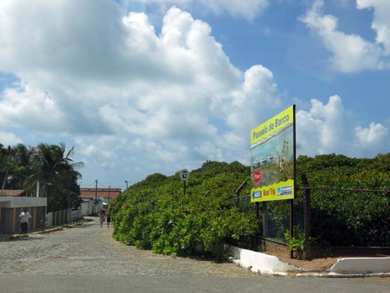 Rua de acesso à praia invadida pelos galhos do cajueiro