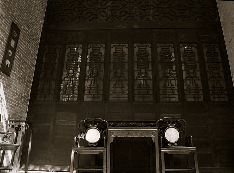 Na verdade, os traços arquitecturais e decorativos do edifício, em termos de visão e refinamento, ultrapassam até os das mansões de Xiguan. Ao penetrar na entrada principal recuada na fachada central logo se apresenta um biombo, um traço típico das mansões chinesas, a conferir à habitação um ar de sinceridade e modéstia. As janelas na fachada lateral são de estilo ocidental, com persianas e caixilhos metálicos, sendo a parte superior das janelas em arco e com vitral, rodeadas de delicadas esculturas em argila.