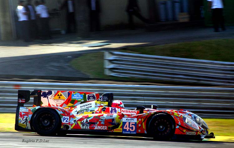 Pintura espalhafatosa do carro nº 45, um Morgan-Nissan dos pilotos: Jacques NICOLET, Jean-Marc MERLIN, Keiko IHARA. 5º colocado na LMP2