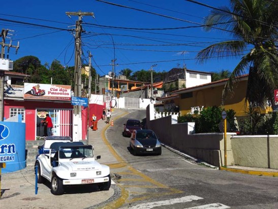 A Avenida Eng. Roberto Freire termina aqui na Praia de Ponta Negra. Acesso para o flat onde ficamos hospedados. À esquerda, aluguel de buggies para passeio nas dunas