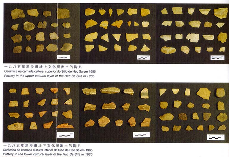 A cerâmica pré-histórica agora em exibição, à excepção de pratos de cerâmica com pé, encontrados em 1977, foi descoberta em 1985. A escavações efectuadas em 1985 permitiram concluir que o Sítio de Hac Sá se pode dividir em camadas superiores e inferiores de diferentes contextos culturais, podendo as peças encontradas distinguirem-se pela sua qualidade, cor e tipo. A camada inferior data de há cerca de 6,000 anos atrás, correspondente à fase inicial do Período Neolítico Médio. A camada inferior, contudo, formou-se entre há cerca de 5,500 e 4,500 anos atrás, ou seja, a última fase do período Neolítico Médio. Esta cerâmica tem um valor académico importante para o estudo e a pesquisa do desenvolvimento cultural pré-histórico e da formação da cultura costeira típica do antigo sul da China.