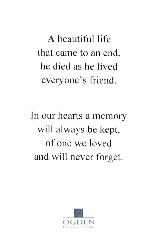 À família enlutada, os meus sinceros pêsames e que a sua alma encontre o descanso eterno.  A mensagem em inglês do cartão memorial diz:
