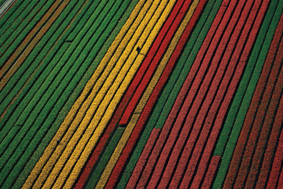 Todo ano, na primavera, o território holandês se torna multicolorido. Desde a primeira floração em 1594 – dos bulbos trazidos do Império Otomano pelo embaixador da Áustria –, quatro séculos de seleção permitiram obter mais de 800 variedades de tulipas. Na região de Lisse, elas são cultivadas para a venda dos bulbos. Em mais de 23.500 hectares, os Países-Baixos garantem 65% da produção mundial de bulbos de flores, ou seja, cerca de 10 bilhões de bulbos. Mas esse resultado brilhante foi obtido às custas do meio ambiente: nos anos 1990, as taxas de pesticidas utilizados por essas culturas eram as mais elevadas da Europa. Os poderes públicos e as empresas fizeram acordos sobre o emprego de produtos químicos, os refugos e a energia, e os agricultores começaram a usar predadores naturais para protegerem seus cultivos. Essa tomada de consciência se propagou pelo mundo: assim, em inúmeras cidades do Canadá e da França, as municipalidades proibiram o uso de produtos químicos nos jardins públicos.