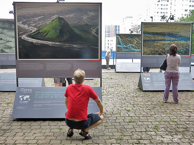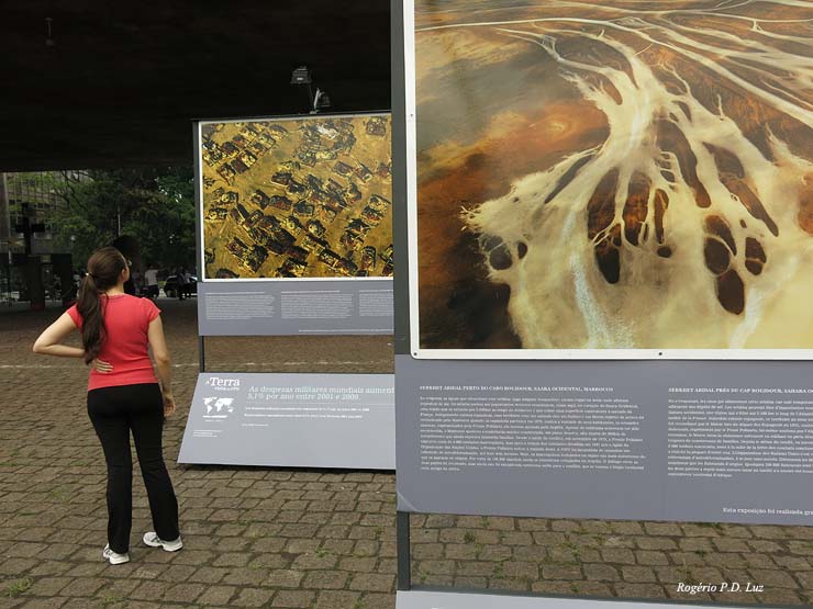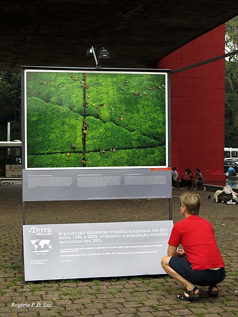 Inaugurada o dia 15 de outubro passado, o vão livre do MASP-Museu de Arte e São Paulo na Avenida Paulista, em São Paulo, recebe a exposição “A Terra vista do céu” com 130 fotos do fotógrafo e ambientalista francês Yann Arthus- Bertrand, que ao longo de 20 anos andou a fotografar o planeta terra. As fotos foram feitas de helicóptero e balão, as quais além de mostrar belas paisagens da terra, também questionam os danos causados ao meio ambiente pelo ser humano.