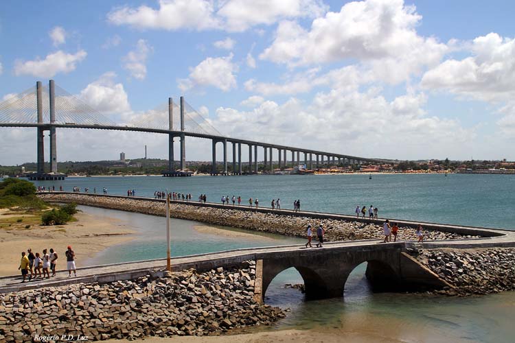 O Forte dos Reis Magos fica ao lado da Ponte Newton Navarro acesso para o litoral norte de Natal, onde fica a Praia de Genipabu com suas famosas dunas