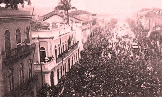 Proclamação da República, 1889, óleo sobre tela de Benedito Calixto (1853-1927). Acervo da Pinacoteca Municipal de São Paulo. Local: Praça 15 de Novembro no Rio de Janeiro.