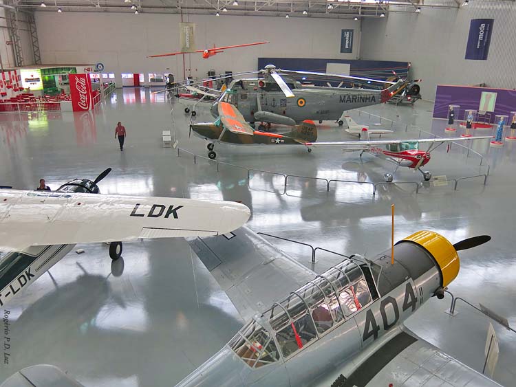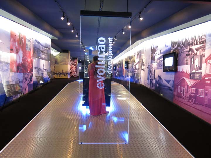 No corredor cultural, maquetes de aviões, vídeos, cartazes, fotografias etc. Se ver tudo, perde-se mais de uma hora.