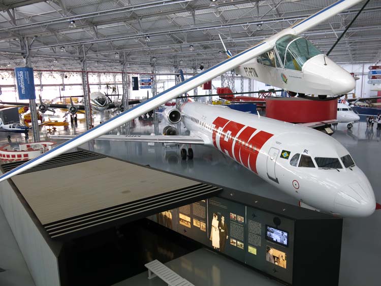 No prédio da recepção e compra de ingressos, com os balcões “check-in”, dá impressão que está num aeroporto, e para decorá-la, um Messerschmitt da 2ª Guerra Mundial suspenso. Muito bom ver um na vida real! Passa-se então para outro prédio onde está o Museu, que tem corredor bem decorado com exposição de fotos, cartazes, maquetes e kits de aviões de todas épocas etc., muito instrutivo, onde você assiste obrigatoriamente a um vídeo da TAM e do seu fundador para então ingressar no imenso galpão com dezenas, quase uma centena de aviões militares e civis.