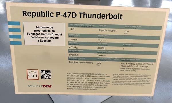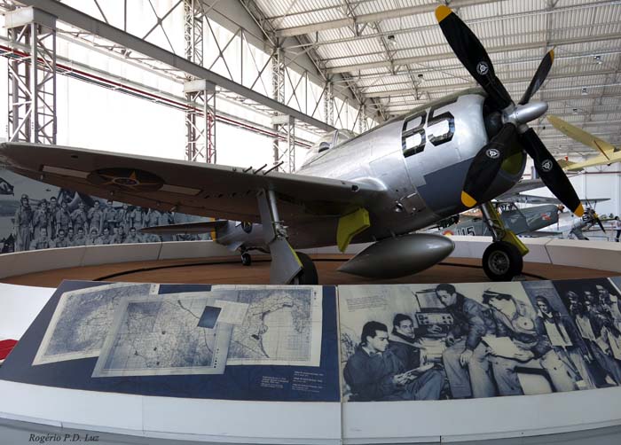 Em dioramas (ambientes montados), este caça Republic P-47D Thunderbolt utilizados por Brasil na 2ª Guerra.