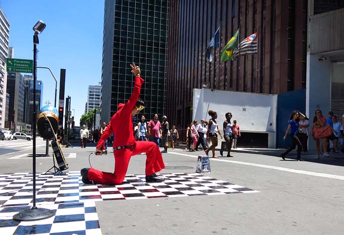 Elvis da Paulista, ou seja, Márcio Henrique de Aguiar – quem passa pela Avenida Paulista, a via badalada de São Paulo, onde tudo acontece, seja a pé, de carro, bicicleta ou de ônibus, deve ter visto a sua atuação defronte ao Shopping Center 3 e do Conjunto Nacional, quase esquina com a Rua Augusta.