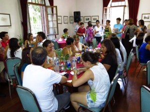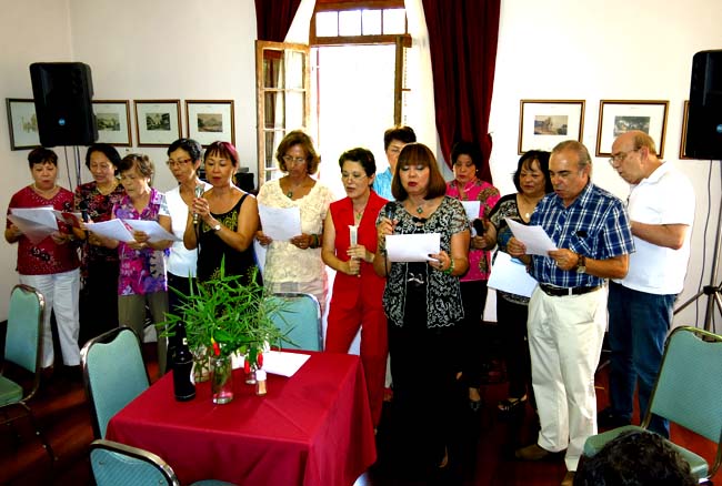 No ambiente decorado com enfeites de motivos chineses, as conversas eram colocadas em dia, ambientadas pelas músicas do cd de Rigoberto Rosário Jr. “Api”, que também marcava a sua presença com uma camiseta chinesa comprada na sua viagem ao Encontro das Comunidade Macaenses de 2013.