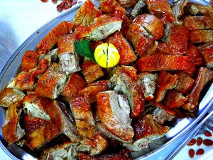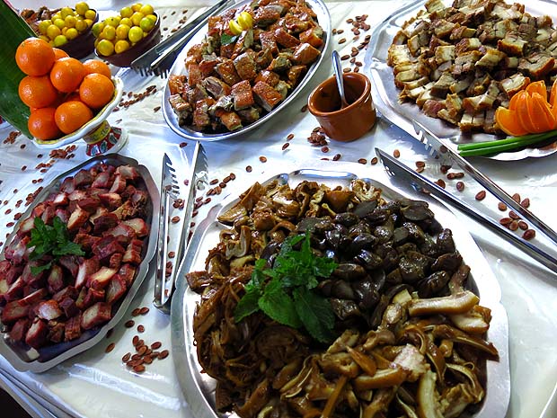 Os pratos da culinária chinesa, uns confeccionados pela Fina e outros comprados na Liberdade eram os seguintes:  Chái de Bonzo (Budha’s Delight); Carne de Porco Agridoce (Ku Lôu Iôc); Frango com Sutate (Si Iâu Kâi); Massa Branca (Hó Fân) com Carne de vaca desfiada (Kón Cháu Ngâu Hó); Pato Assado à Moda Chinesa (Siu Áp);  Lombo de Porco Assado (Chá Siu); Porco a Pururuca (Siu Iôc); Lou Mei e Pepino Agridoce.  Para sobremesa, seriam também servidos doces e salgados chineses, além das tradicionais tangerinas, uma fruta típica da época festiva.