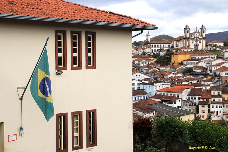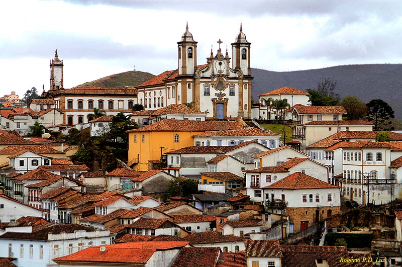 Em destaque a Igreja N.Sra. do Carmo e atrás dela o Museu da Inconfidência. O prédio amarelo é do Teatro Municipal.