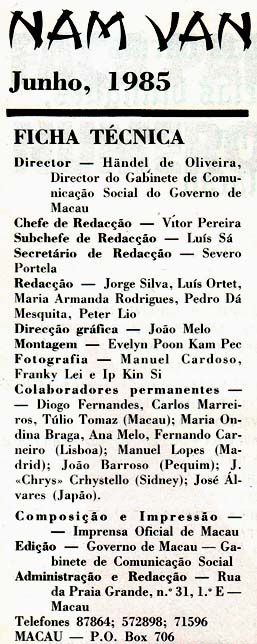 Na edição comemorativa do 1º aniversário da Revista Nam Van, em Junho de 1985, foram publicadas diversas fotos aéreas panorâmicas de Macau.