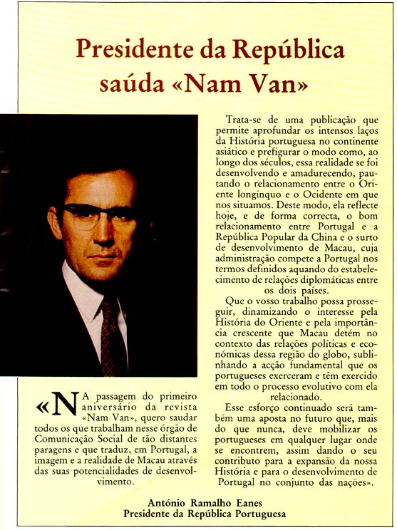 Segue também publicada a capa da revista, a ficha técnica da equipe da sua redação e mensagem do Presidente da República Portuguesa Ramalho Eanes com os cumprimentos pela edição comemorativa.