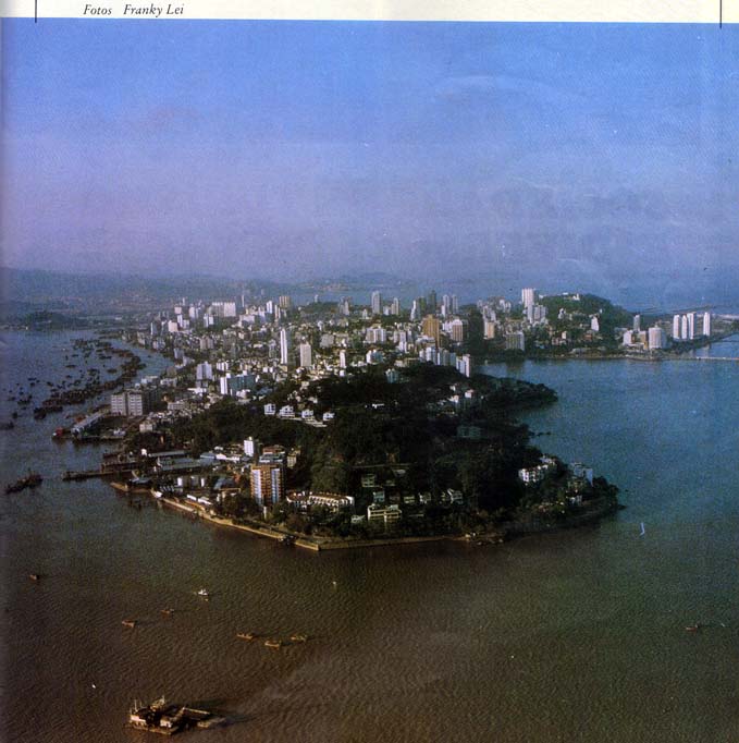 Ilha da Taipa (a revista dizia: “um espaço alternativo para a construção de grandes recintos”. Eis que foi ampliada com aterros, vieram os casinos, o aeroporto.e muitos prédios bem altos, além da Universidade de Macau, e etc.