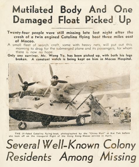 Esta da catalina Miss Macau ainda me recordo deste incidente…era eu ainda menino e moço, mas recordo dos cadáveres na mortuária de S. Januário. Tentaram raptar o avião que continha muitas barras de ouro (o comércio era legal na altura), mas os assaltantes não esperavam a reação tanto do piloto como de um passageiro “kuai lou”, que acabou por provocar a desgraça matando todos exceto o cabecilha. A minha amiga Elsa Demée (do Pilar) que seria a hospedeira de bordo nesse dia, foi substituida pela colega Gutierrez, a pedido desta que precisava estar em Hongkong por motivos familiares. A Elsa sobreviveu e saímos com os nossos amigos em confraternização ainda hoje… ironias do destino.