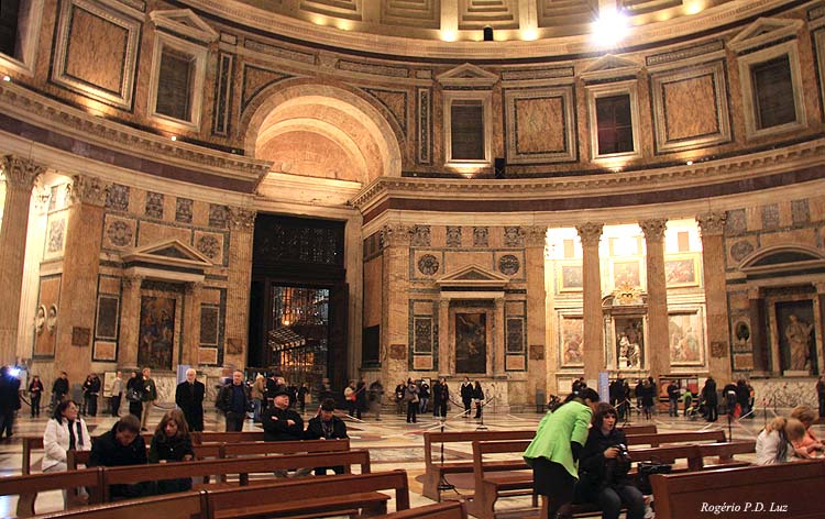Vejamos as fotos que fiz, bastante prejudicadas pela pouca claridade, e o histórico do Patheon recolhido da Wikipedia: