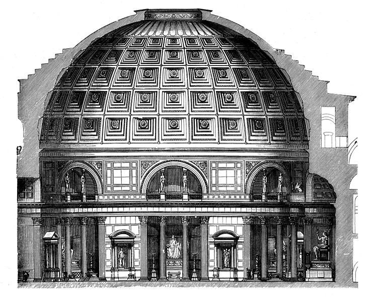 A maior cúpula construída antes da descoberta do concreto armado no séc. XX, representa o céu e a abertura, o óculo, o Sol