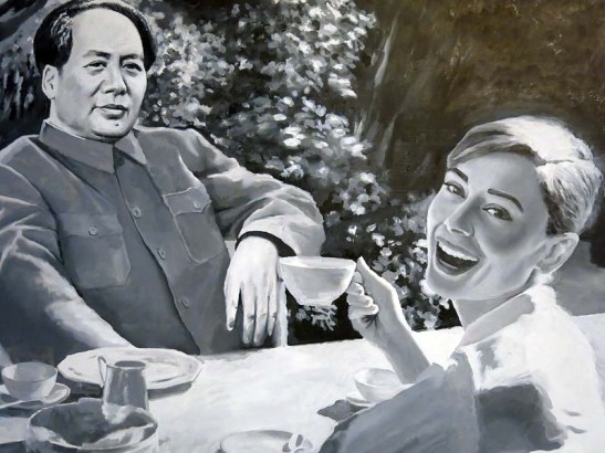 “Afternoon Tea” do pintor realista Shi Xinning reproduz cena fictícia de Mao Tse Tung tomando chá com uma celebridade