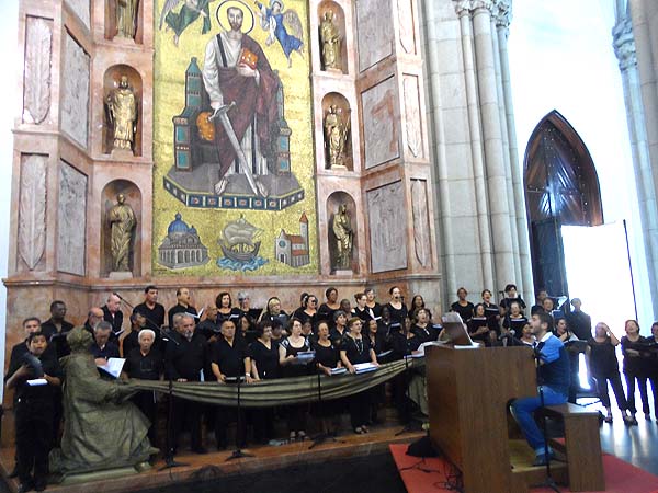 Após a missa, Dom Odilo permaneceu diante do altar-mor e dezenas de fiéis se aglomeravam para cumprimentá-lo, o que achei interessante e aproveitamos para engrossar a multidão e apertar as mãos daquele que no ano passado, durante a eleição do novo Papa, foi apontado como um dos possíveis candidatos, o que provocou grande expectativa no Brasil.