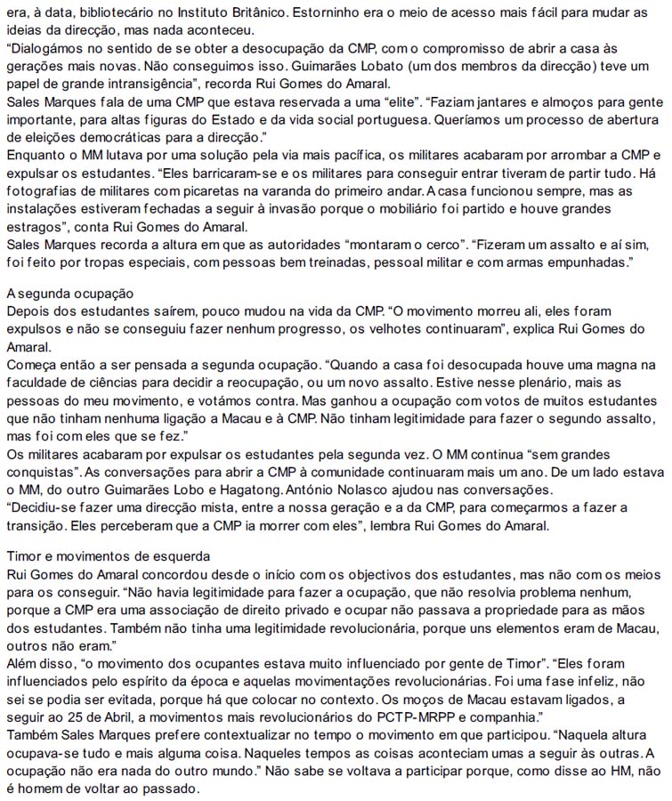 Assim sendo, reproduzo as duas versões da “Ocupação da Casa de Macau de Portugal”.