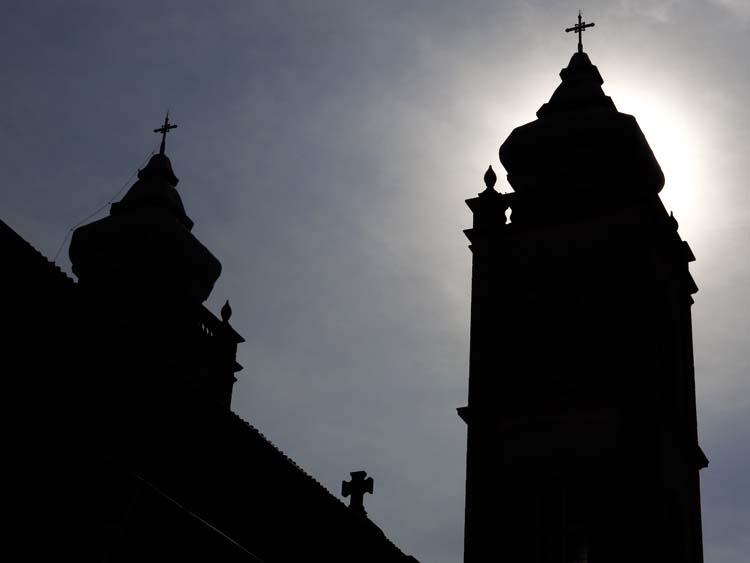 Santuário de Fátima, bairro de Sumaré, São Paulo-SP. O formato das nuvens parecia querer anunciar que se tratava de data comemorativa da aparição de Nossa Senhora de Fátima em Leiria Portugal.