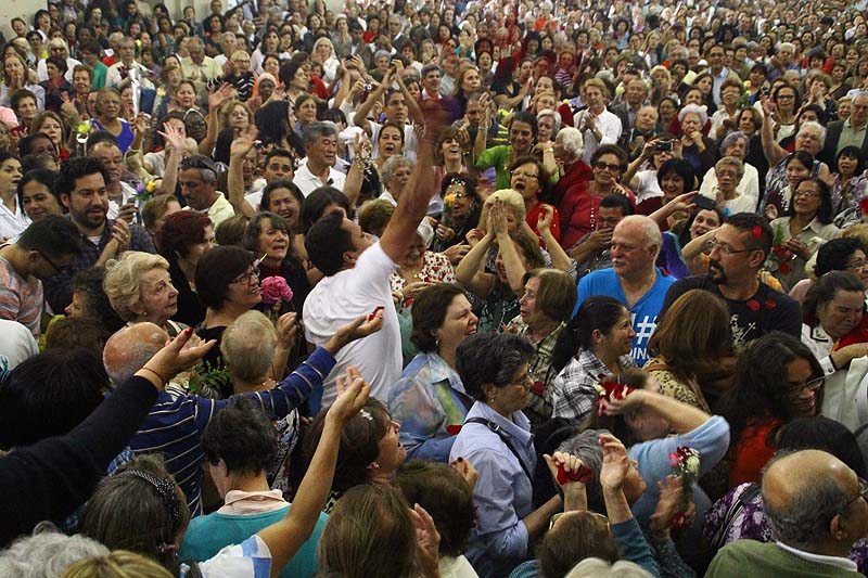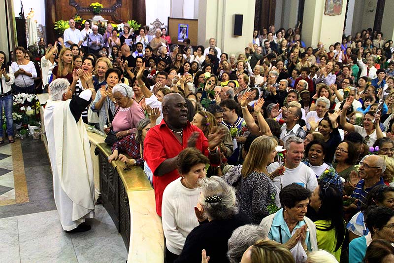 A dado momento, um fiel exaltou a sua fé e devoção ao jogar pétalas de rosa no ar.
