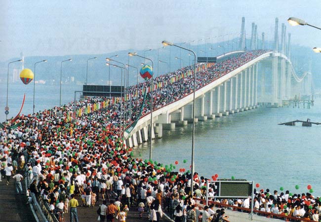 A nova ponte Macau-Taipa, Ponte da Amizade, foi inaugurada com a passagem de um dragão humano com 1559 metros e transportado por 2800 pessoas ao longo de mais de quatro quilómetros da ponte. Entrou para o livro de recordes no Guinness Book of Records.