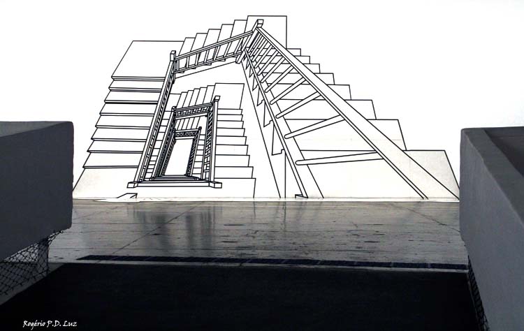 Em 1878, na cidade de Santa Fé (EUA), um carpinteiro não identificado realizou uma obra impossível: construiu uma escada de madeira em caracol, com duas voltas completas de 360º, sem usar um único prego. O milagre, atribuído à São José por todos os que visitam a Escola de Nossa Senhora da Luz (Loreto) até hoje, serviu de inspiração para Regina Silveira intitular sua Escada Inexplicável (1999), obra que remonta para a ocasião de 30 × Bienal. (texto do site)