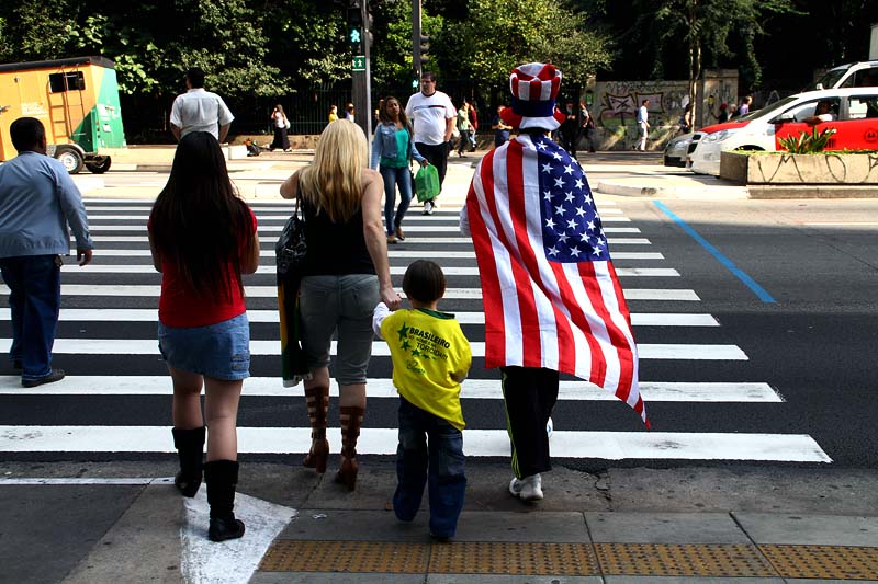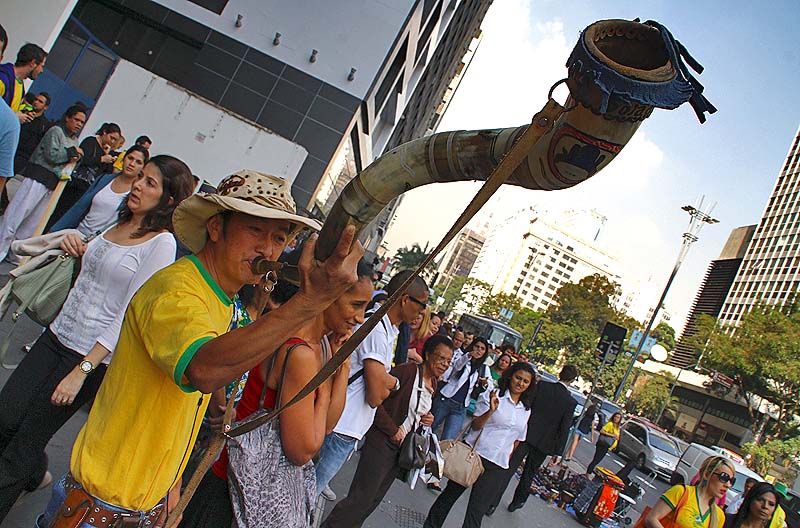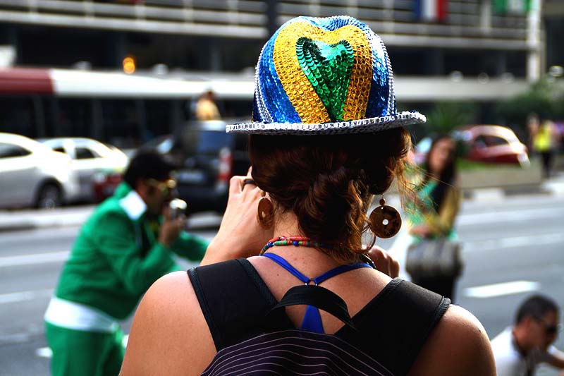 Via-se muita gente com as camisetas da seleção ou com cores do Brasil, ou chapéus e enfeites do mesmo tema. Mas, andando em direção ao MASP-Museu de Arte, um grupo de duas dezenas de manifestantes com faixas contra a Copa, interrompiam o trânsito no sentido de Consolação sacaneando milhares de pessoas que tinham pressa para chegar às suas casa. Alguns buzinavam, mas não adiantava, os caras estavam a fim de sacanear o povo mesmo, para atingir os seus objetivos. Pergunto: qual o direito desses poucos prejudicarem milhares de pessoas. Até me lembra de atitudes fascistas. E se alguém prejudicasse a vida de um desses manifestantes, como eles reagiriam?
