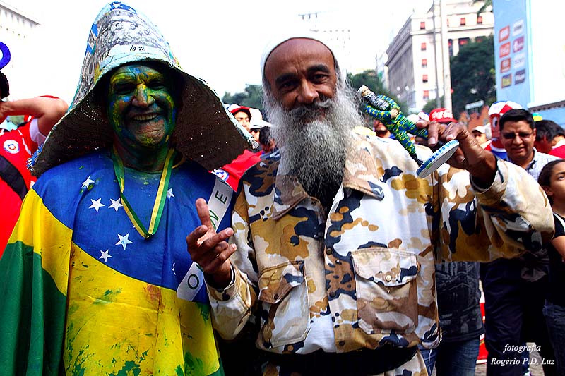 Finalmente fui ao evento da FIFA Fan Fest no Vale do Anhangabaú, com o propósito de fotografar os torcedores no jogo Chile x Holanda que foi realizado em 23/junho/2014 às 13:00 horas. Foi gratificante pois estava faltando na minha coleção fotos de torcedores fantasiados desta Copa do Mundo 2014 no Brasil.