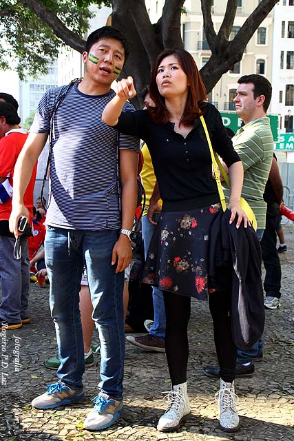Os chineses também estavam lá na festa com o mesmo jeito que vestem na China. Um questão de gosto das moças.