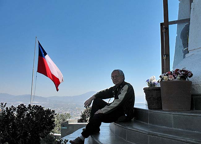 Você contempla a cidade de Santiago sentado nas escadarias da estátua. Muito relaxante.