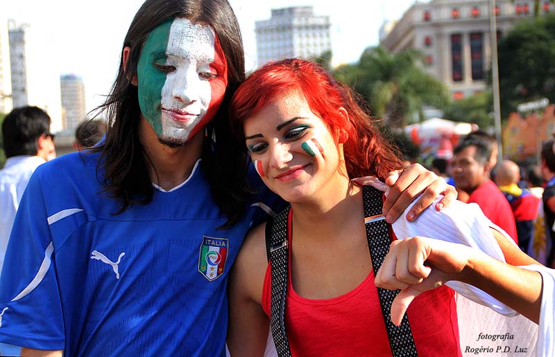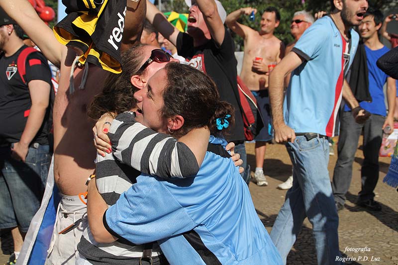 Em São Paulo, no Vale do Anhagabaú, um bom grupo de uruguaios, superior à reduzida torcida da seleção italiana, assistiu no espaço reservado para a Fifa Fan Fest. A torcida, no autêntico sangue latino, torceu fervorosamente pela sua seleção que no campo surpreendeu os europeus pelo seu jeito de jogar no limite, ainda mais por se tratar de Copa do Mundo. Por isso, o certame mundial, nesta fase, mais parece uma Copa América pelo número de seleções classificadas.