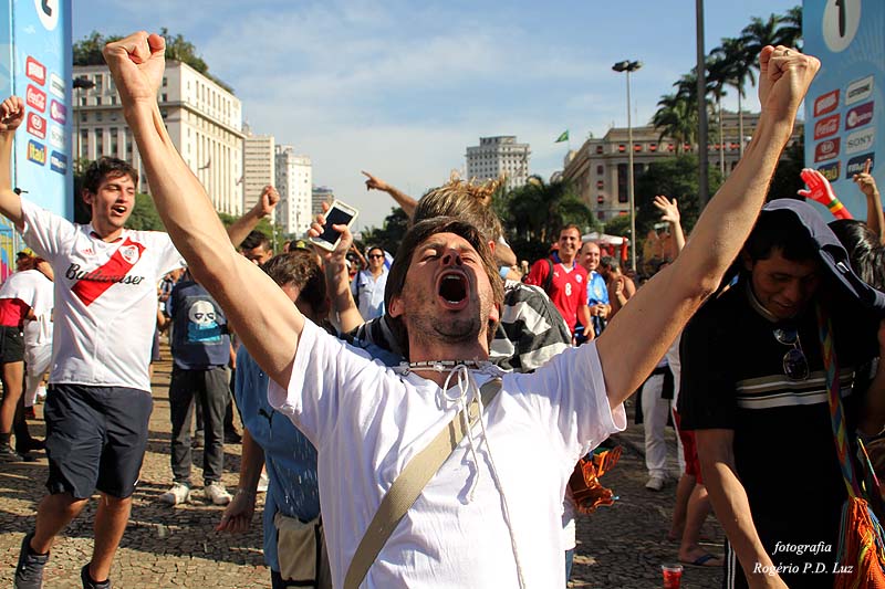 Este espaço da Fan Fest é ideal para sentir o ambiente da Copa do Mundo no Brasil, se não conseguiu bilhetes para ir aos estádios, como tentei para São Paulo, pois lá estão reunidos gentes de todo o mundo e vira uma autêntica torre de Babel a ouvir multiplicidade de línguas. O que se percebe que muitos estrangeiros vêm ao Brasil, mesmo sem bilhetes, para viver o clima da Copa e pelas ruas você vê a presença de turistas, incomum em outras épocas em São Paulo. Procuro o possível viver este momento que, certamente, será uma única vez na vida e a fazer estas fotos e daquelas de outras postagens deixo-o aqui registrado neste blog.