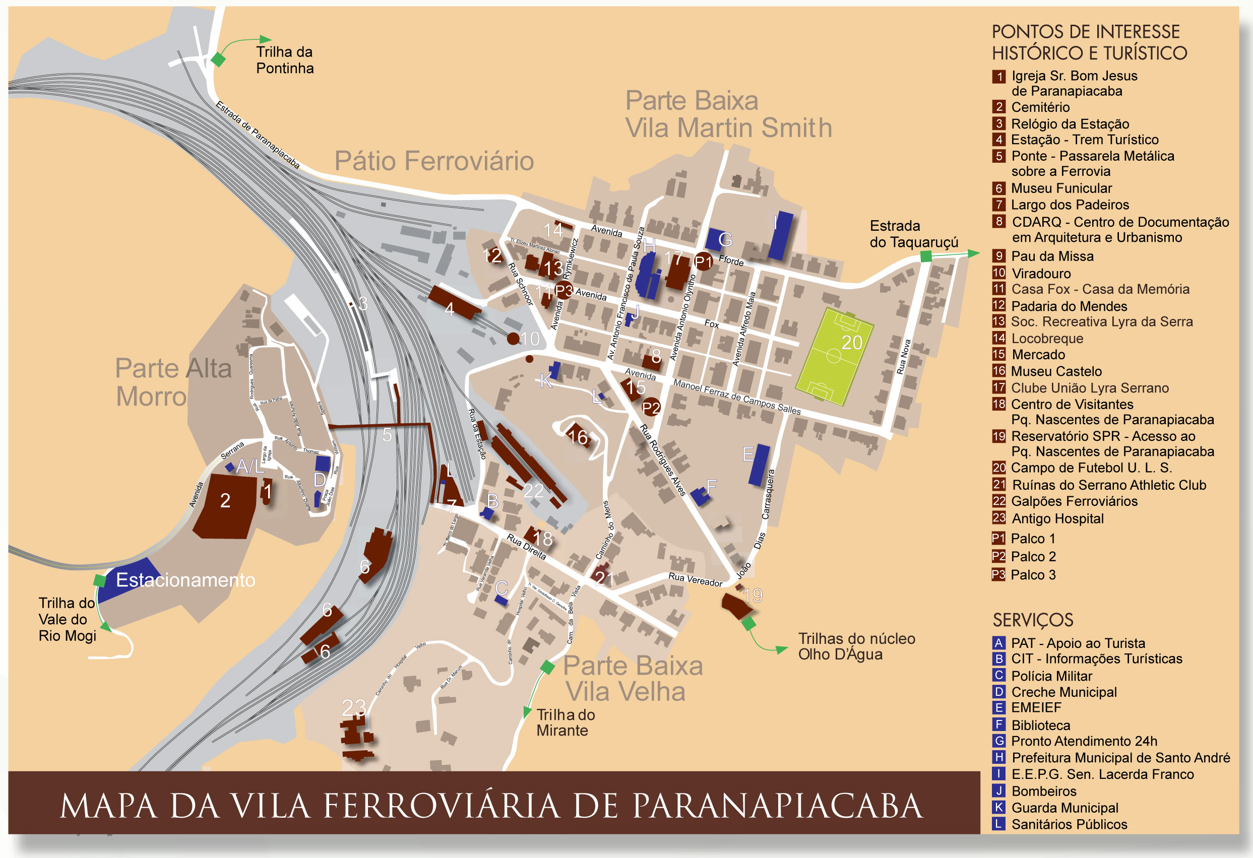 Visitar a vila de Paranapiacaba é fazer um passeio à história da primeira ferrovia do estado de São Paulo, cuja construção coube à inglesa São Paulo Railway no final do século XIX. A companhia operava a estrada de ferro que realizava o transporte de cargas e de pessoas do interior paulista para o porto de Santos e vice-versa.