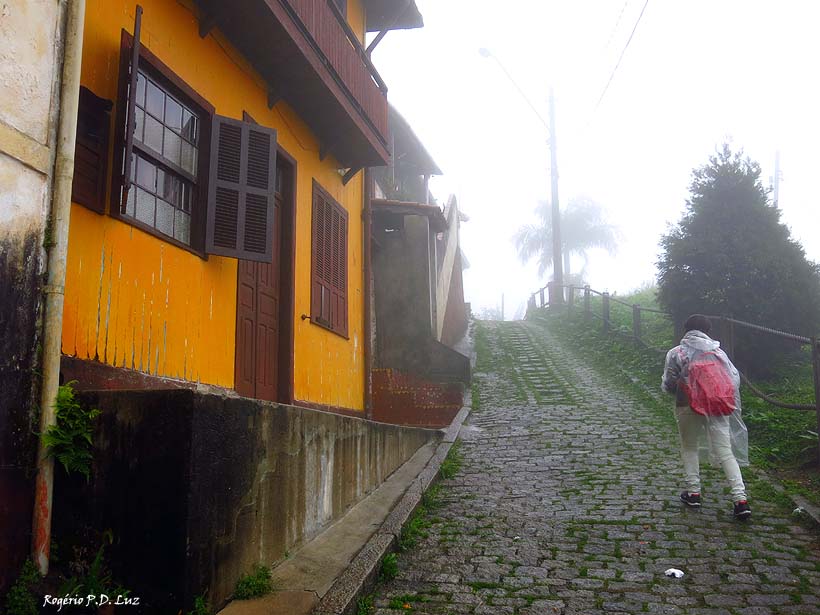 Outra ladeira da parte alta. Lá no topo, em tempo bom, pode-se avistar a torre de relógio tipo Big Ben de Londres, que não deu para ver em nenhum ângulo devido ao nevoeiro.