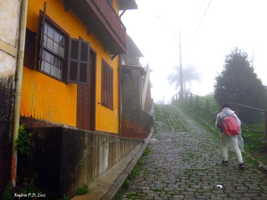 Outra ladeira da parte alta. Lá no topo, em tempo bom, pode-se avistar a torre de relógio tipo Big Ben de Londres.